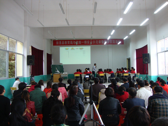 10月17日,实习检查组还与新晃县教育局合作开展了“实习示范课暨同课异构教学交流活动”,由我校一附小陈静、曾平,新晃县姚红萍、杨剑英、蒲晴5位老师分别授课,探讨课程改革,展示教改成果。新晃县教育局领导、新晃县选派的小学教师和我校在新晃实习的师范生共200余人参加了本次活动。