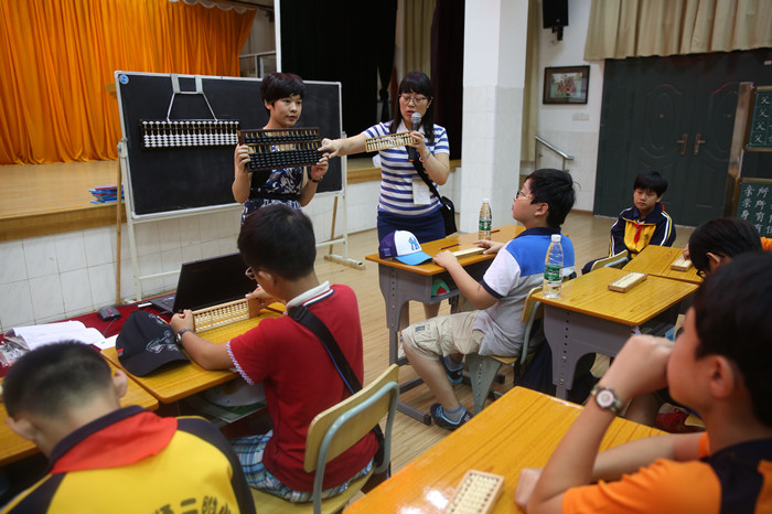 林玲老师教他们珠心算