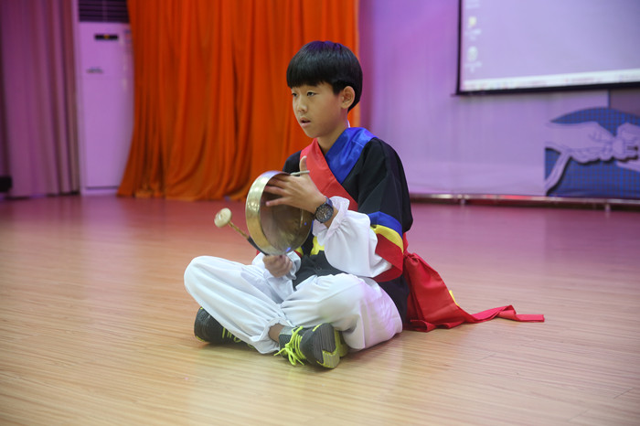 中韩学生还举行了热烈精彩的联欢会,韩国的孩子唱中国歌曲、表演韩国戏剧、敲韩国民族乐器手锣,二附小的孩子也表演了舞蹈、独唱、课本剧。最后,大家一起开展游艺活动,抢椅子、两人三足、托乒乓球等等,气氛非常融洽。