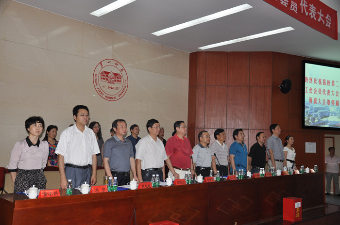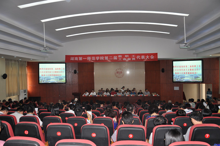 上午9:00,大会正式开始,党委书记彭小奇主持了会议。会上,校长金潇明代表学校行政作了题为《脚踏实地,锐意进取,为把我校建设成高水平师范院校而努力奋斗》的工作报告。金潇明在报告中全面回顾了上届“双代会”以来的主要工作:全面加强党建和思想政治教育工作,为学校的科学发展提供了坚实的思想基础和强大动力;深入实施人才强校战略,狠抓教学科研工作,倾力打造学校核心竞争力;广开财源,加大教育教学硬件建设力度,努力打造美丽一师;着力解决关系师生切身利益的重大问题,稳步推进民生工程;统筹兼顾,全面推进学校各项工作。同时,金潇明指出,我校在全国高等教育发展迅速的大背景下,面临着师资和干部队伍水平有待进一步提升、非师范生生源竞争和毕业生就业压力进一步加大、办学经费不足、办学设施有待进一步改善、学科专业建设水平需进一步提高、后勤社会化问题亟待解决等困难和挑战。当然,国家已经将教育放在优先发展的战略位置,越来越重视高等教育,经费投入也逐年增加,这将为我校的可持续发展提供强劲动力;我校升本以后,学校的品牌优势得到了进一步加强,办学特色鲜明,这将为学校的快速健康发展提供有力保证,这都是我校发展面临的良好机遇。为此,金潇明着重强调了未来五年里的发展目标和主要任务:进一步加强党建工作和思想政治教育工作;进一步加强师资队伍建设;进一步加大干部队伍的建设力度;狠抓教学质量,加大学科专业建设力度,顺利通过本科办学水平评估;建设重点学科,培育学术团队,建设好特色实验室和重点实验室,为硕士点建设奠定良好的基础;进一步改善办学条件;继续深化教育教学改革,确保人才培养质量;进一步强化内部管理,积极推进和谐校园建设。