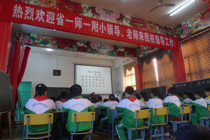 首先,王校长热情地带领大家参观了附小的校园,介绍了学校自主开发的特色校本教育。接着,在吉大师院附小多媒体教室进行了语文、数学课程的教学交流。我校一附小陈静老师执教的语文课《送元二使安西》拉开了活动的帷幕。陈老师教学思路清晰,情感充沛,善于引导,使语文课堂充满了诗意,让全体师生沉醉其中。接下来我校一附小曾平老师执教了数学课《平均数》,曾老师巧妙的教学设计,幽默的教学语言以及引导学生在生活中学数学、用数学的理念让人耳目一新。第三堂课是吉大师院附小罗啸老师的数学研讨课——《抽屉原理》。课堂上,师生共同合作,共同探讨,充分实现了学生的自主、合作性学习,锻炼了学生发现问题,解决问题的能力。这种自主、合作式教学给听课的教师以很多启迪。第四节课,陈静老师为吉大师院附小的学生和老师讲述了梅子涵爷爷的故事《走在路上》。听完故事,孩子们和许多老师都流下了感动的眼泪。最后,我校一附小副校长方芳为参与交流的老师们作了一场题为《书香校园、诗意人生》的主题讲座。