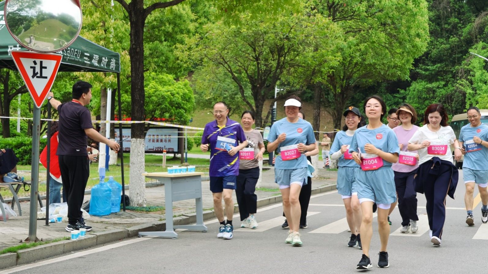 下午3时20分,罗成翼宣布开幕。教师组比赛率先展开。参赛教师们精神抖擞地列阵起跑线前,蓄势待发、充满斗志,在发令枪鸣响时如离弦之箭般冲出起点。沿着精心规划的校园环线,选手们穿梭于百熙楼、综合体育馆、教学科研大楼(立园楼)、工科大楼(金城楼)等校园标志性建筑之间,既展示了坚韧不拔的斗志、奋勇争先的风采,又彰显出彼此激励、互相帮助的团队精神,共同完成全程挑战。