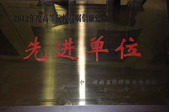 近日,中共湖南省纪委下发《关于表彰2012年度反腐倡廉建设先进单位的决定》文件(湘纪发〔2013〕4号),我院被授予“2012年度反腐倡廉建设先进单位”称号。此次全省共有32个单位获此殊荣,其中高校有6所。