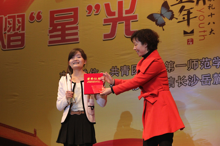 杨兰英为十佳“星”青年颁发荣誉证书,并作了重要讲话,她指出:十佳“星”青年身上所体现出的立志创造、艰苦奋斗的时代精神,要成为激励全院学子积极进取、开拓创新的精神保障。希望十佳“星”青年要创新学习,善于学习;珍惜荣誉,崇尚荣誉;率先垂范,再创佳绩。希望全院广大青年要以受到表彰的十佳“星”青年为榜样,加强学习,历练本领,争创佳绩。
