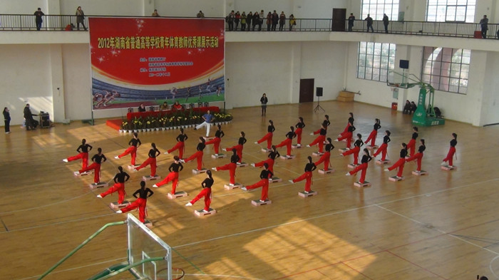 12月8日上午,由省教育厅主办的2012年首届湖南省普通高等学校青年体育教师课堂教学比武荣获一等奖的优秀课展示活动(本科学院组)在衡阳师范学院举行。省教育厅体卫处副处长贺昭、省内高校部分体育专家以及来自全省14所本科学院的300余名青年体育教师参加了此次活动。我院体育系青年教师肖琴的“踏板操”展示课获同行赞誉。