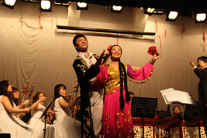 音乐会上,管弦乐团的老师和同学们倾情演奏了《北京喜讯到边疆》、《月儿高》、《校园畅想》等管弦乐曲,演唱了《十送红军》、《龙船调》、《可爱的一朵玫瑰花》、《在那遥远的地方》等中外名曲,他们的精湛技艺赢得了师生们阵阵热烈掌声。