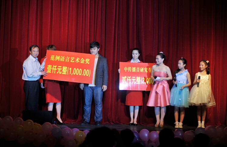 晚会临近结束,刘副院长给文史系08级曾婷同学颁发了中传播音研究生奖金2000元,而1000元的语言艺术金奖则由文史系马恒一同学获得。语言艺术的彰显,靠的不仅是技巧,更需要文化底蕴。正如晚会所倡导的那样:“语言传播文明,艺术诠释人生。”优秀的传统文化需要我们一代代的传承和发扬。结尾颁奖时刘志敏副院长动情地说“今天晚会搞得很成功,我在这里看的很开心。我院曾婷考上播音研究生,为大家树立了榜样,希望她今后多为学校争光,也希望范例语言艺术晚会越办越好。”