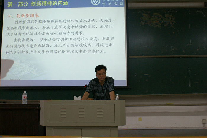 邹教授从创新的若干定义与描述、马克思主义的创新概念、科技创新等八个方面为我们介绍了创新精神的内涵。他列举了不同时期、不同领域的杰出人物对创新的定义,并借用江泽民总书记的话“创新是一个民族进步的灵魂,是一个国家兴旺发达的不竭动力,也是一个政党永葆生机的源泉”来鼓励大家积极创新、努力实践。他向同学们讲解了计算机科学与技术发展史上的重大事件与创新精神,并简单介绍了“计算机之父”—约翰·冯·诺依曼、“人工智能之父”—阿兰·麦席森·图灵等著名人物的相关事迹以及其中的宝贵创新精神。他详细讲解了如何实践创新的内容,并结合创新型人才、具备的创新思维以及创新的实践方法三个方面着重介绍了成为创新型实践人才的要点,就是必须突破传统的思维障碍。在活动中,邹教授以亲身的教学经验为例,帮助大家理解了计算机的创新精神以及创新实践。