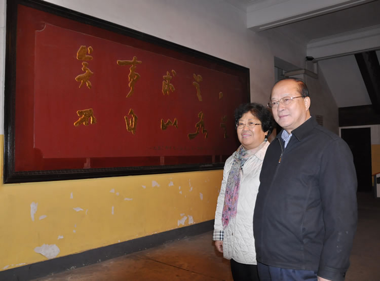 李长江一行饶有兴趣地参观了青年毛泽东纪念馆,进一步了解了成就一代伟人的第一师范。临走时还特地要求在前楼大厅毛泽东的“要做人民的先生,先做人民的学生”和徐特立的“实事求是,不自以为是”的题词前留影纪念。