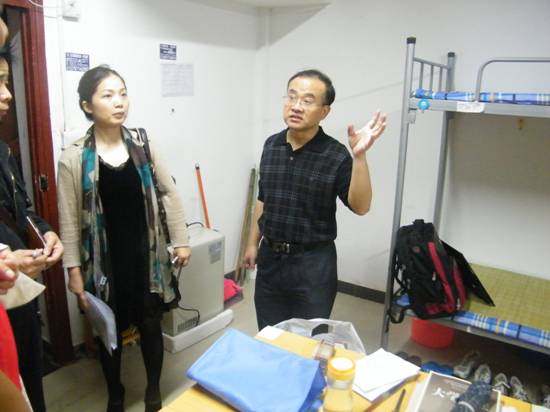 彭小奇院长一行先后来到学生公寓,深入了解学生公寓生活设施及安全管理的相关情况,在与学生及宿舍管理人员的亲切交谈中,彭院长表达了对学生学习、生活的关心,强调了安全管理及学生人身安全的重要性,并对加强此方面的工作提出了要求和希望。当得知城南校区没有统一规范的洗衣房时,彭院长当即要求相关部门协商解决,尽快建好设施齐全的洗衣房,解决城南校区学生洗衣难的问题。