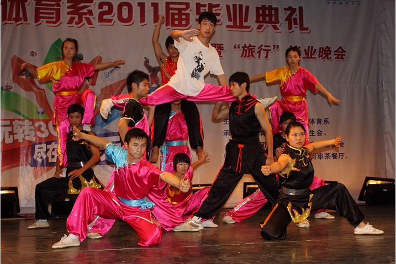 晚会上,体育系同学们精彩上演了有11个特色鲜明的文艺节目,其中院武术队和健美操队的节目将晚会推向高潮,此次活动充分展示体育系学生团结进取、奋力拼搏的体育精神。(体育系:纪鑫)