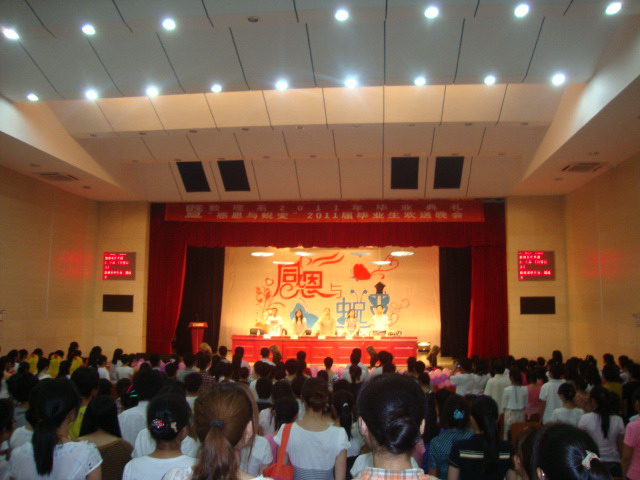 6月15日晚 ,文史系2011届毕业生毕业典礼暨毕业生欢送晚会在东方红校区科技楼演播厅隆重举行。系党总支陈天涯副书记主持了毕业典礼,院学生工作处处长何文,团委书记任晓晴,武装部部长林光明,文史系党总支书记雷庆娥、主任刘澍心、副主任邓绍秋等领导及400余名师生出席毕业典礼并观看了晚会。