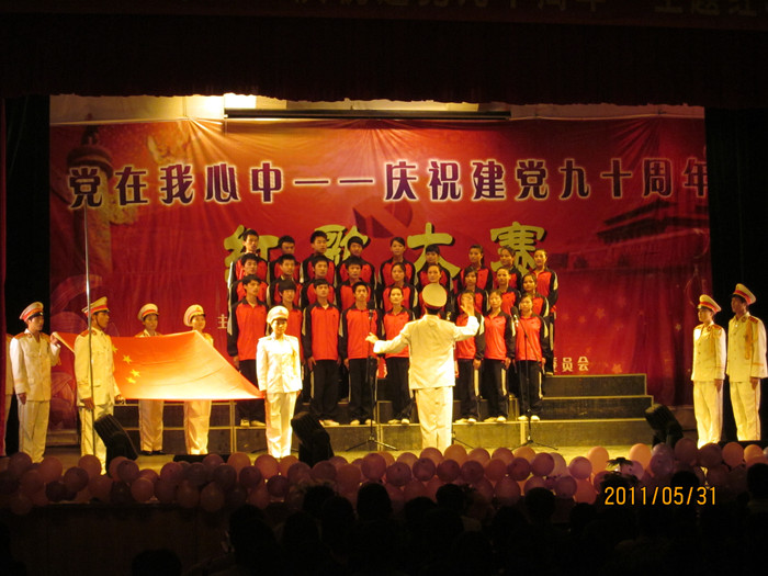 为热烈庆祝中国共产党成立九十周年,今年3月份以来,院党委宣传部、院团委、院关工委以“学习青年毛泽东,庆祝建党九十年”为主题,在全院范围内成功开展了读书征文大赛、“学党史、知党情、跟党走”大型报告会、演讲大赛等系列活动。此次“党在我心中”红歌比赛更是得到了全院师生的积极响应和热情参与,全院十个系部均组建了“红歌合唱团”参加了本次红歌大赛决赛,嘹亮的红歌响彻了校园的每一个角落。