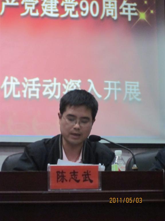 院党委宣传部部长陈志武宣读了《关于表彰2010—2011学年度先进团组织和优秀个人的决定》。获奖代表孙侠老师、唐雷同学、唐伦舟同学、胡漫同学发表了获奖感言。