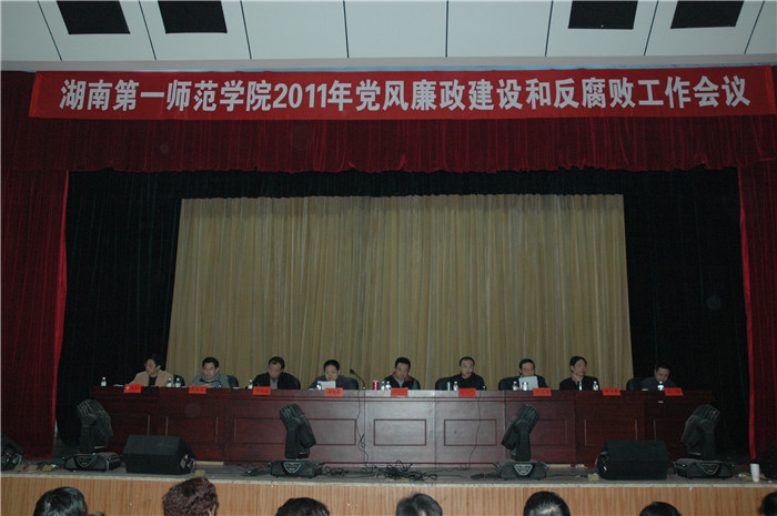 4月12日下午,我院在东方红校区科技楼演播厅召开了2011年党风廉政建设和反腐败工作会议。院党政领导,纪委委员,各党总支(支部)书记、纪检委员,副科级以上干部,副高以上职称教职工,博士,人大代表,政协委员,各民主党派主委,各系部教研室主任,离退休党总支书记参加了会议。会议由院长彭小奇主持。