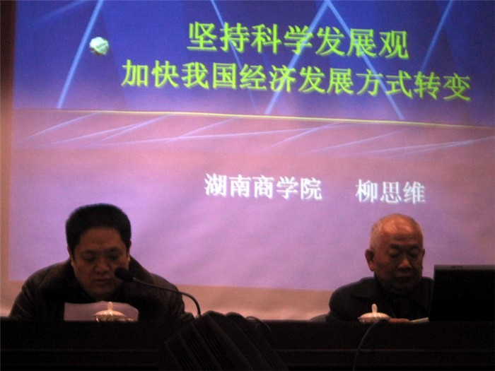 12月15日下午,著名经济学家柳思维应邀来我院作了一场题为“坚持科学发展观 加快我国经济发展方式转变”的学术讲座。院党委副书记肖湘愚主持了讲座,经管系主任佘国强、党总支书记彭志忠、副书记欧阳范剑、副主任程志宇以及师生代表400余人共同聆听了这场精彩的讲座。