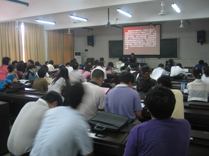 小教部蒋蓉主任首先向全系老师隆重介绍了本部新进的19位教师,接着着重就系部新学期工作进行了整体部署,还特别就新开办的“初中起点六年制小学教育专业” 的培养目标、培养模式和课程体系作了详细解读。