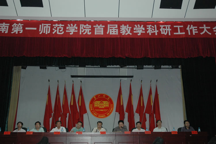 上午9:30,大会在雄壮的国歌声中拉开帷幕。党委副书记肖湘愚首先致辞,并指出,在我院升格为本科师范院校两年之后的今天隆重召开教学科研工作大会,十分必要,这对于我院从根本上提高教育教学质量和科研工作水平具有战略性意义。他代表学院党委对在教学科研工作中辛勤耕耘、无私奉献的广大教师、教辅人员及全院教职工致以亲切的问候和崇高的敬意!对申纪云副厅长和唐利斌处长、左清处长于百忙之中莅临我院指导本次会议,表示热烈欢迎和衷心感谢!肖湘愚副书记在致辞中还简明扼要地阐述了本次大会的目的、任务与要求,并预祝大会圆满成功。