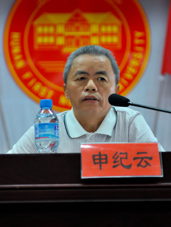 申纪云副厅长在大会上作重要讲话。他首先代表省教育厅、省委教育工委对大会的召开表示热烈祝贺,对辛勤耕耘在教学科研一线的老师们表示崇高敬意。随后,申厅长对我院的教学科研工作提出了三点建议:第一,要始终坚持以人才培养为中心,正确处理好教学与科研的关系;第二,要始终坚持把教师队伍建设作为学校工作的一个永恒主题,把教学团队建设和科技创新团队建设结合起来;第三,要始终坚持把质量监控贯穿于学校管理的全过程,建立提高质量和科研水平的长效机制。最后,申厅长向与会人员情真意切地表达了他的心愿,他说,我希望一师今后办好,办出水平,办出特色,毕业生要像过去中师时期培养的学生一样,在全省、在全国都受到欢迎,都认为一师毕业的学生水平高。