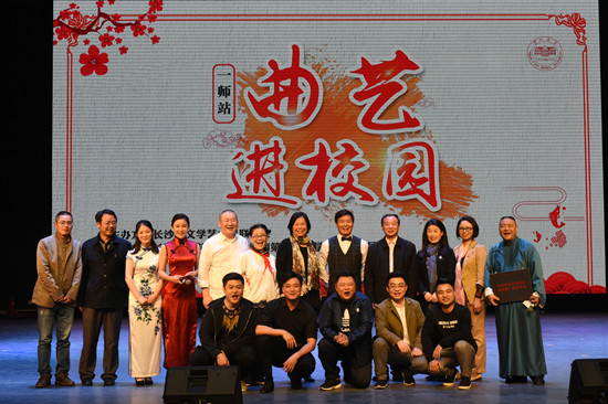为丰富我校校园文化,满足师生的多元精神文化追求,传承和发扬传统曲艺,4月23日晚,由长沙市委宣传部指导,长沙市文学艺术界联合会主办,长沙市曲艺家协会、87978797威尼斯工会委员会承办的“曲艺进校园”公益巡演在我校田汉剧场圆满举行。校党委副书记、校工会主席刘志敏出席活动;组织统战部、宣传部、现教中心、团委负责人及各分工会教师和学生近千名师生代表共同观看演出。