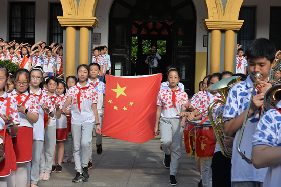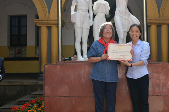 开幕式最大的惊喜,莫过于深受大家喜爱的、享誉国内外的著名绘本画家蔡皋奶奶亲临活动现场。当少先队员代表为蔡奶奶系上红领巾时,蔡奶奶无比激动,动情地回忆起当时在第一师范求学时的经历,她还能记起每一位老师的名字,模仿老师在课堂上的语音语调,甚至还饶有兴致地背诵起儿时的课文……学校生活的历历往事,都深深地印刻在这位老人的心上,因为于她来说,生活无不艺术,艺术即生活。她的作品就是基于真实的生活经历和中国传统文化的表达。蔡奶奶说,“我的作品是什么?它像是一泓清水,不大不小刚好照见我的天光和云影,我的生活;艺术是什么?它就像一艘船,带我们去想去的地方,去欣赏沿途的无限风光。”