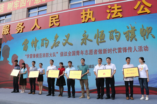 5月19日,长沙市望城区“雷锋的名义·永恒的旗帜——倡议全国青年志愿者做新时代雷锋传人活动”在“全国学雷锋模范消防大队”望城区公安消防大队举行。中华全国总工会副主席(兼职)郭明义、《雷锋》杂志总编辑陶克少将出席,我校团委副书记罗祥云、青年志愿者代表刘娜同学参加活动。