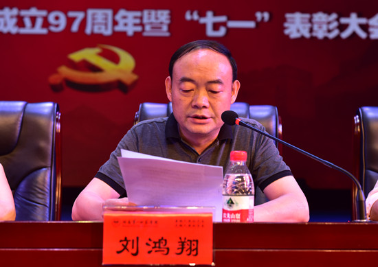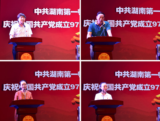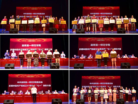 6月29日下午,我校在田汉剧场隆重召开庆祝中国共产党成立97周年暨“七一”表彰大会。校领导彭小奇、童小娇、刘志敏、刘鸿翔、李克勤、刘宇、曹兴、李昱、江正云以及全体师生党员,离退休党总支、一二附小党员代表参加大会。会议由校党委副书记刘志敏主持。