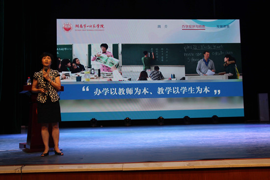 童小娇从学校简介、办学现状与特色、发展愿景三大方面,介绍了一代伟人毛泽东主席母校的校史校情。她谈到,一师是一本厚重的书,值得每一位一师人去品读、去理解、去传承。拥有“千年学府、百年师范”美誉的第一师范有着无限的发展空间。强调人生最重要的三件事是求学、立志、成家。伟大校友毛泽东主席在一师求学、工作的8个春秋里,实现了从青年学子、教师到职业革命家,从激进的民主主义者到马克思主义者的两大转变。希望新生们也能在此实现人生的升华。童校长从人才培养、学科建设与科学研究、师资队伍、办学条件、合作交流、办学特色六个层面,阐释了我校办学以教师为本、教学以学生为本的办学特色,示范引领、统筹兼顾、整体推进的建设思路,师范教育特色突出、师范专业与非师范专业健康协调发展的本科专业格局。最后,她指明了我校未来发展的愿景,由衷希望每位一师学子胸怀远大抱负,不辱使命,做有理想、有作为的新时代青年!