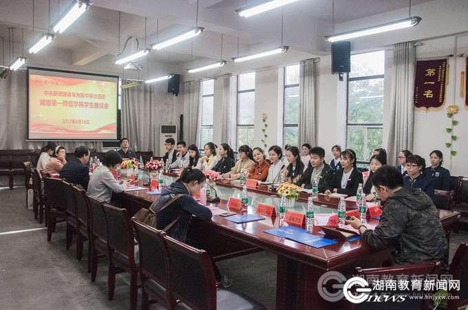 学校党委书记彭小奇就湖南一师乡村优秀小学教师培养情况做了详细汇报。彭小奇指出:自1903年举办现代师范教育以来,学校一直高举师范教育旗帜,坚守师范教育净土,坚定不移地举全校之力培养教育人才,形成了“培养小学教师,培训小学教师,研究小学教育,造就民族英才”的鲜明教师教育办学特色,为中国基础教育培养了6万多名优秀小学教师。目前学校在校师范生比例达77.9%,其中公费定向师范生比例达70.3%(10609人),是全国最大规模的乡村小学教师公费定向培养高校。