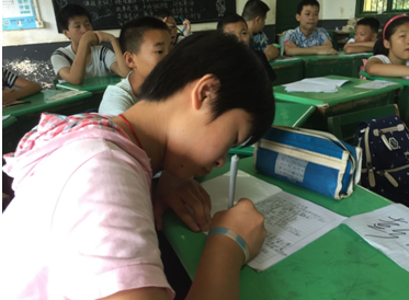 课程由学院14级六年制数学专业的学生罗琳主讲。罗琳曾在青年毛泽东纪念馆担任两年多的志愿讲解员,给纪念馆参观的游客讲解毛泽东故事多达50次,多次获“优秀学生志愿讲解员”称号。此次三下乡实践活动她结合自己的优势共开设了《走进敬爱的毛主席》、《毛主席与第一师范》、《文明其精神,野蛮其体魄》、《读无字之书求真知》四个毛泽东故事专题。针对不同年级的学生设定了不同深度的教学目标,采用了可调度的教师语言和讨论会形式,让毛主席在小学生心中的形象更加具体化,不仅仅局限在“伟大”、“光辉”等惯用字眼。故事分享后,学生们纷纷发言阐述了自己心中的毛主席形象。在老师总结概括时,孩子们目不转睛地听着,生怕错过一句话。更难得的是,在老师没有要求的情况下,孩子们不由自主地拿出了纸笔记录毛主席的青年故事。课堂接近尾声,孩子们依旧沉浸在先辈革命的事迹中。