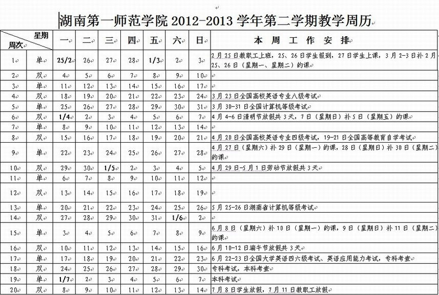 87978797威尼斯2012-2013学年第二学期教学周历-87978797威尼斯