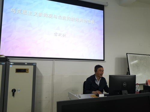 10月24日晚,中国传媒大学舆论研究所所长、湖南大学特聘教授雷跃捷老师应邀来我校作题为“马克思主义新闻观与当前的新闻舆论宣传”的专题讲座。讲座由文学与新闻传播学院院长龙永干主持,文学与新闻传播学院新闻专业全体师生参加了本次讲座。