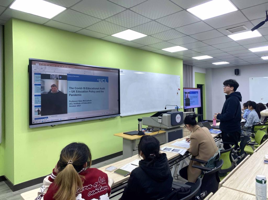 11月29日晚7点,我校“芙蓉学者”讲座教授、英国社会科学院院士、英国教育权威刊物《BritishJournalofEducationstudies主编、伦敦大学教育学院人文与社会科学系主任GaryMcCulloch教授应邀通过ZOOM线上会议作题为“新冠肺炎教育审计:英国教育政策与疫情的学术讲座。我校教育学院黄蓝紫老师、外国语学院王佳娣老师(翻译),以及部分师生参加了此次线上讲座。