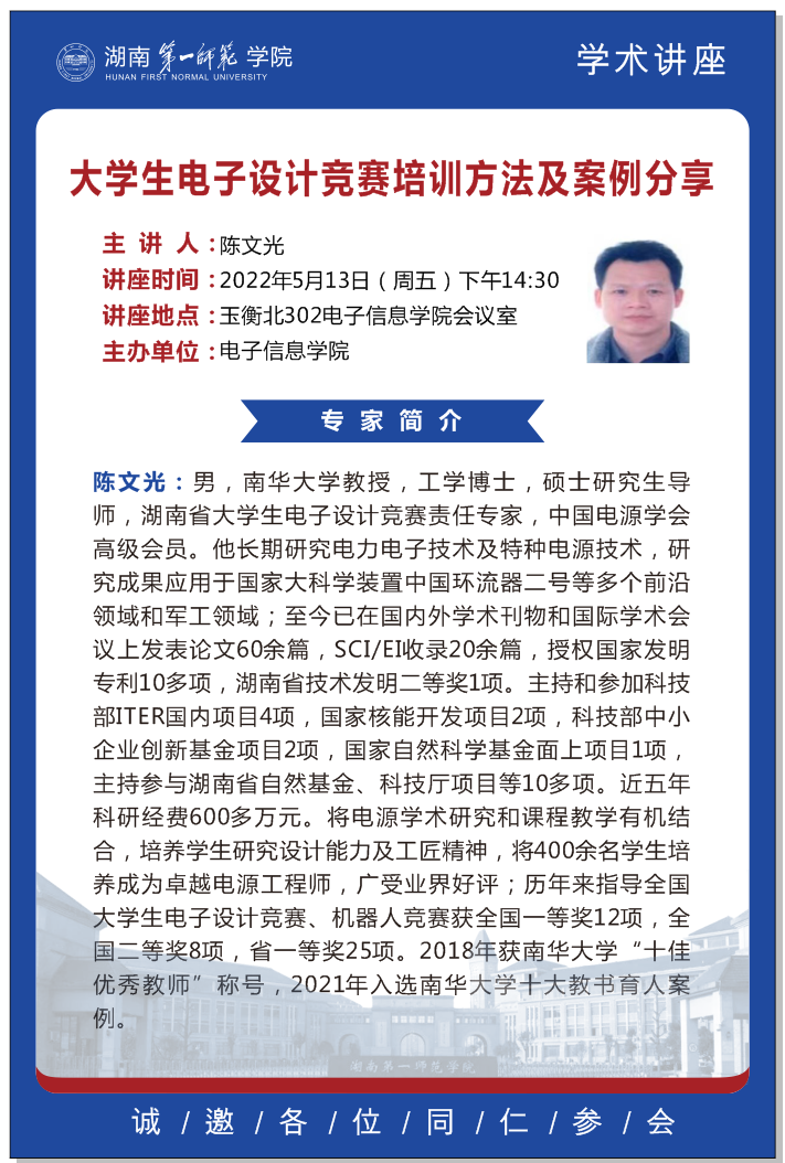 讲座预告|大学生电子设计竞赛培训方法及案例分享-87978797威尼斯