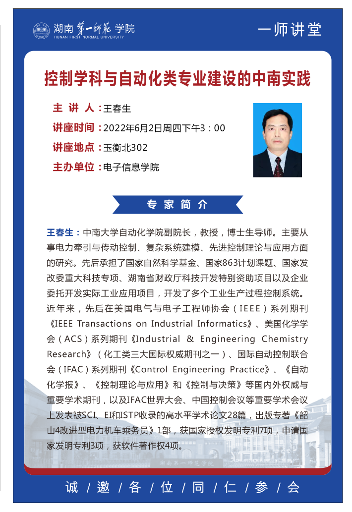 学术预告|控制学科与自动化类专业建设的中南实践-87978797威尼斯