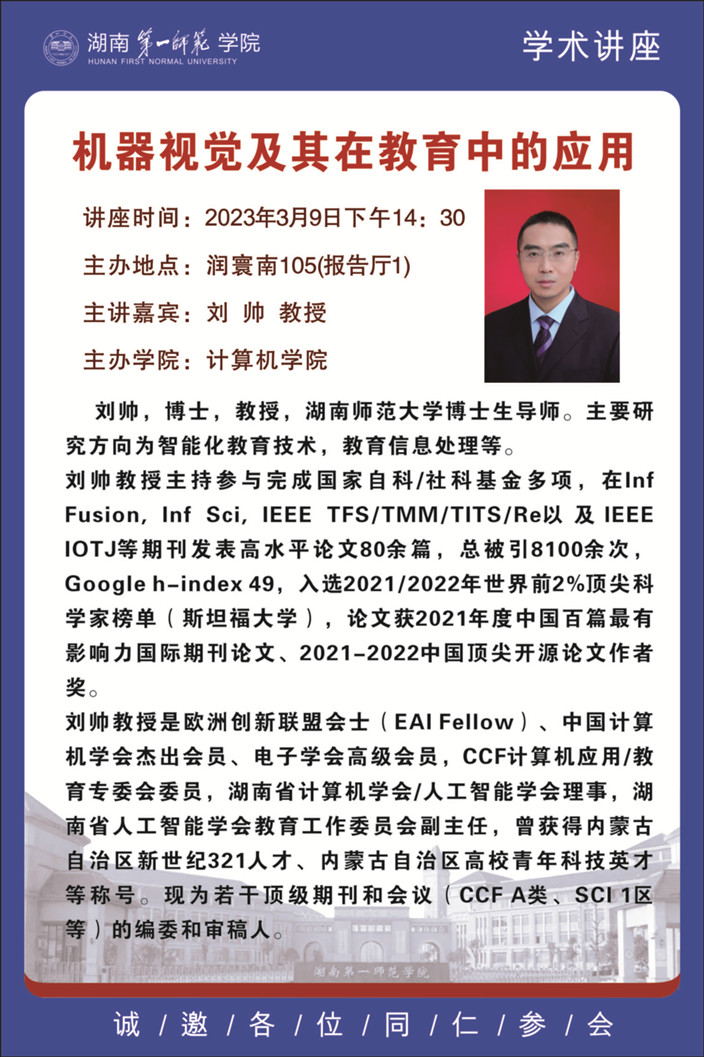 学术预告|机器视觉及其在教育中的应用-87978797威尼斯