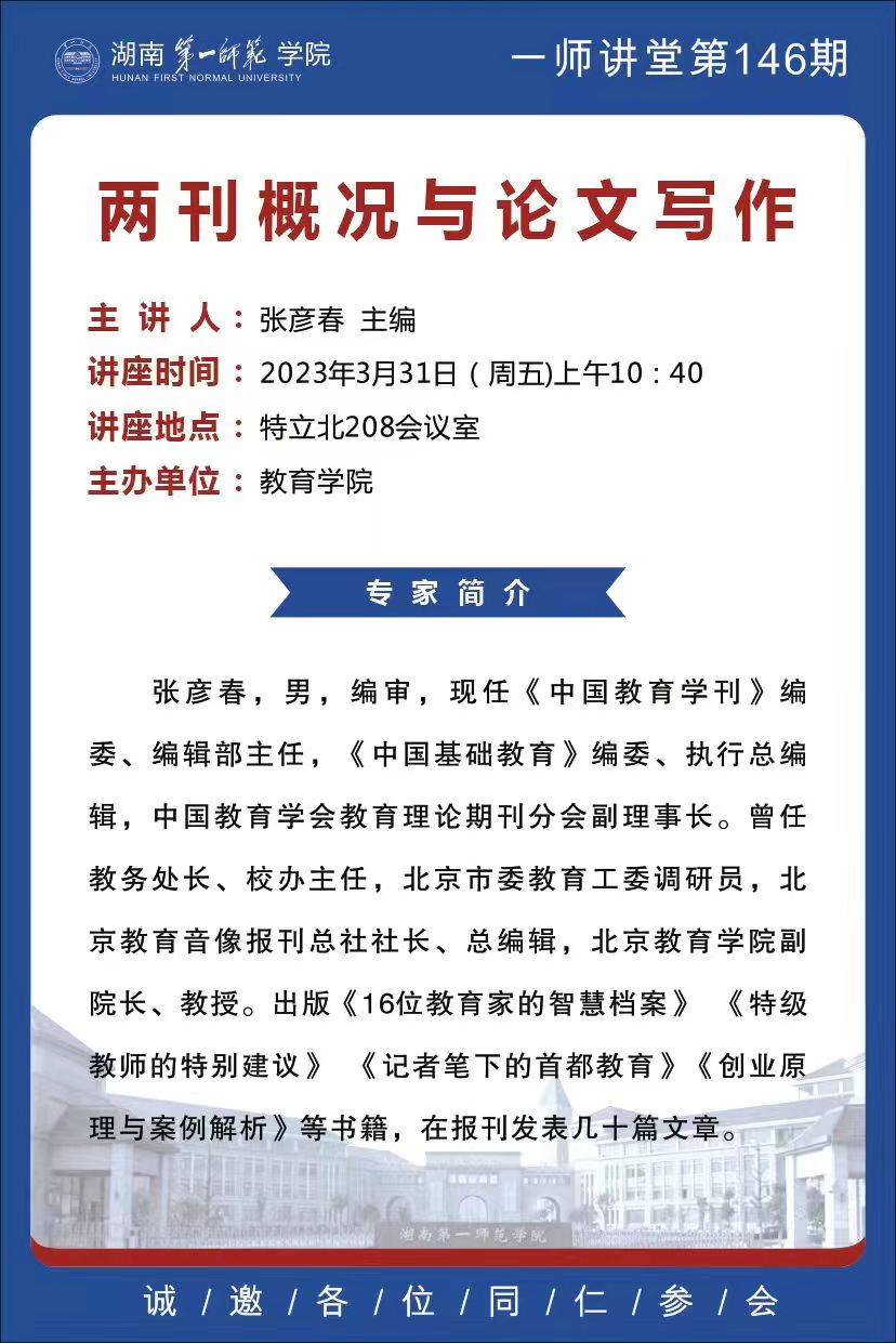 学术预告|一师讲堂第146期:两刊概况与论文写作-87978797威尼斯