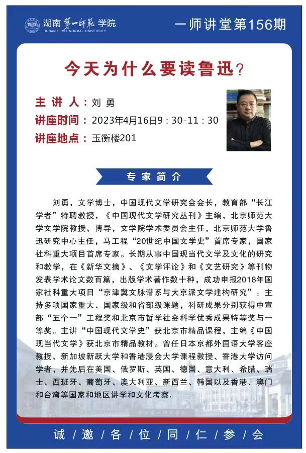 学术预告|一师讲堂第156期:今天为什么读鲁迅?