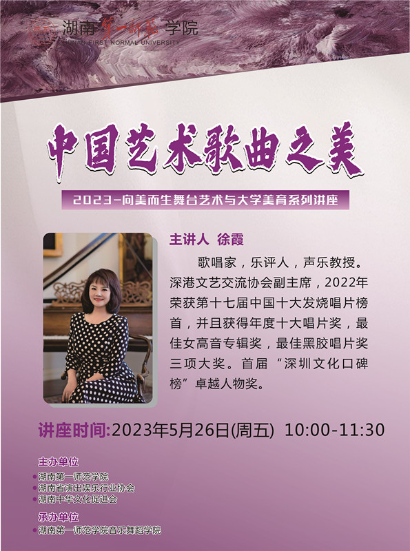 学术预告|一师讲堂第177期:中国艺术歌曲之美——2023-向美而生舞台艺术与大学美育系列讲座