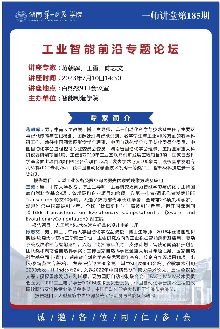 学术预告|一师讲堂第185期:工业智能前沿专题论坛