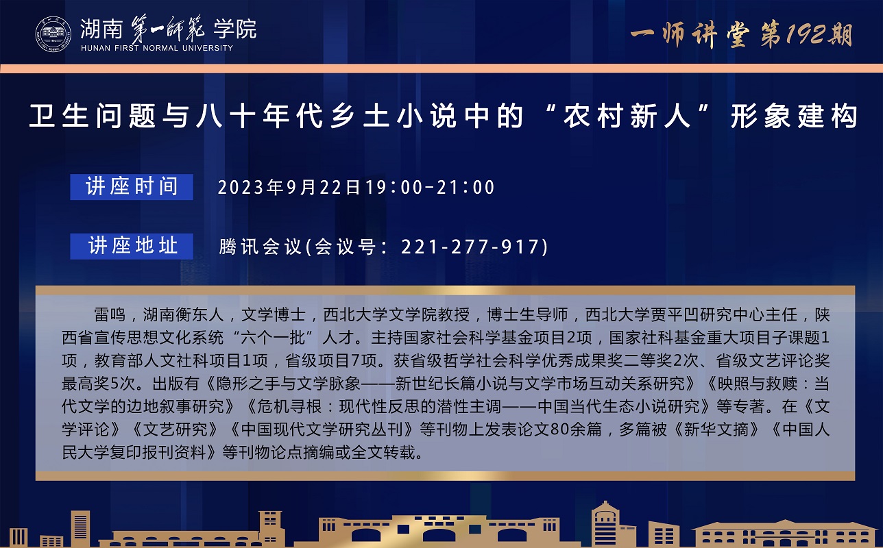 学术预告|一师讲堂第192期:卫生问题与八十年代乡土小说中的“农村新人”形象建构