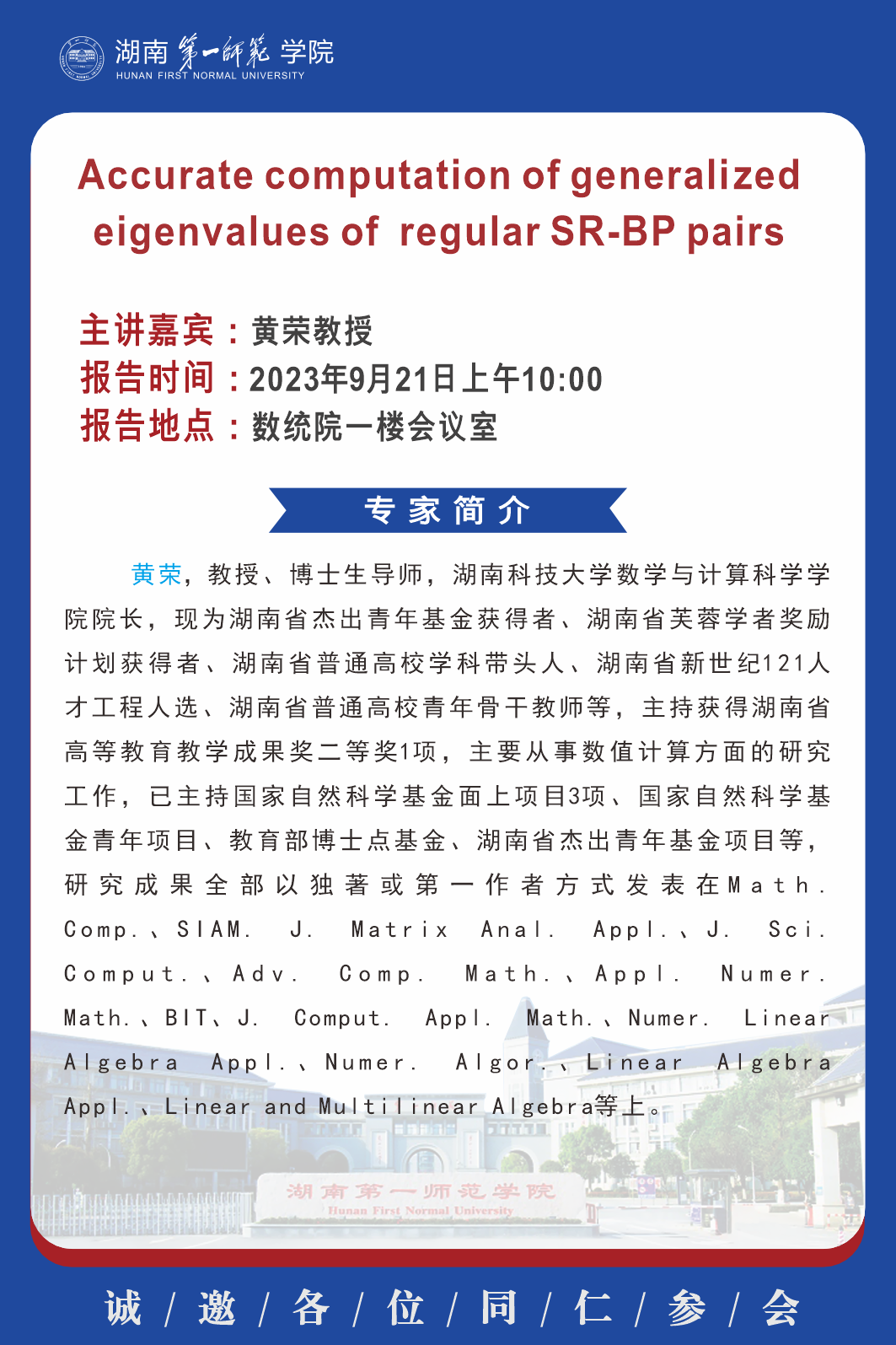 学术预告|学术讲座:Accurate computation of generalized eigenvalues of regular SR-BP pairs