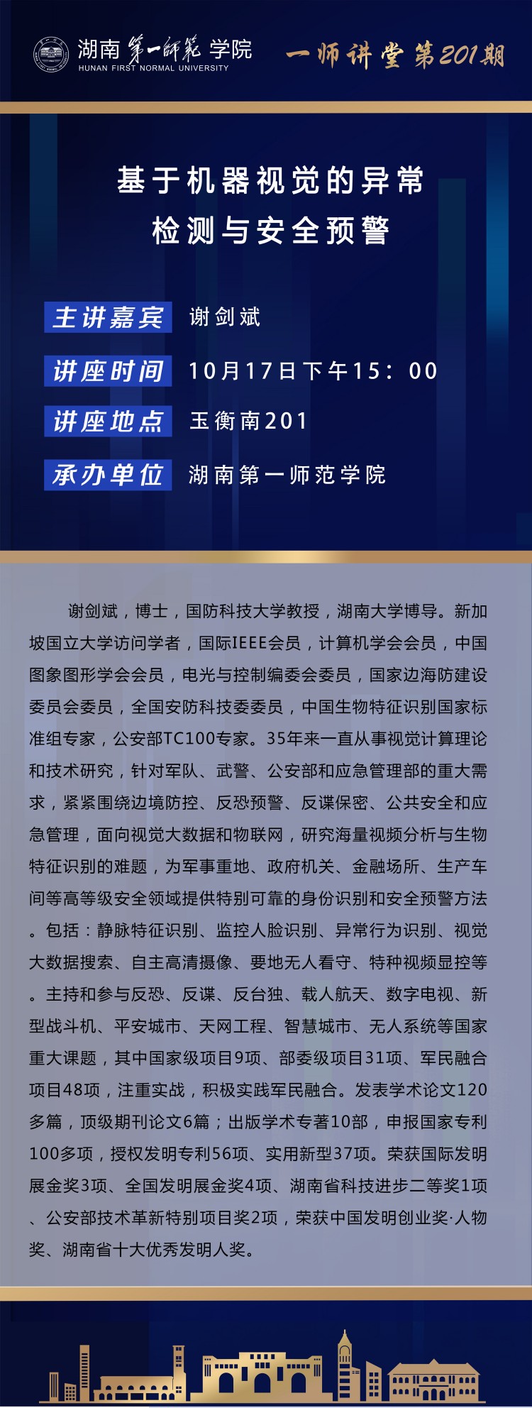 学术预告|一师讲堂第201期:基于机器视觉的异常检测与安全预警-87978797威尼斯