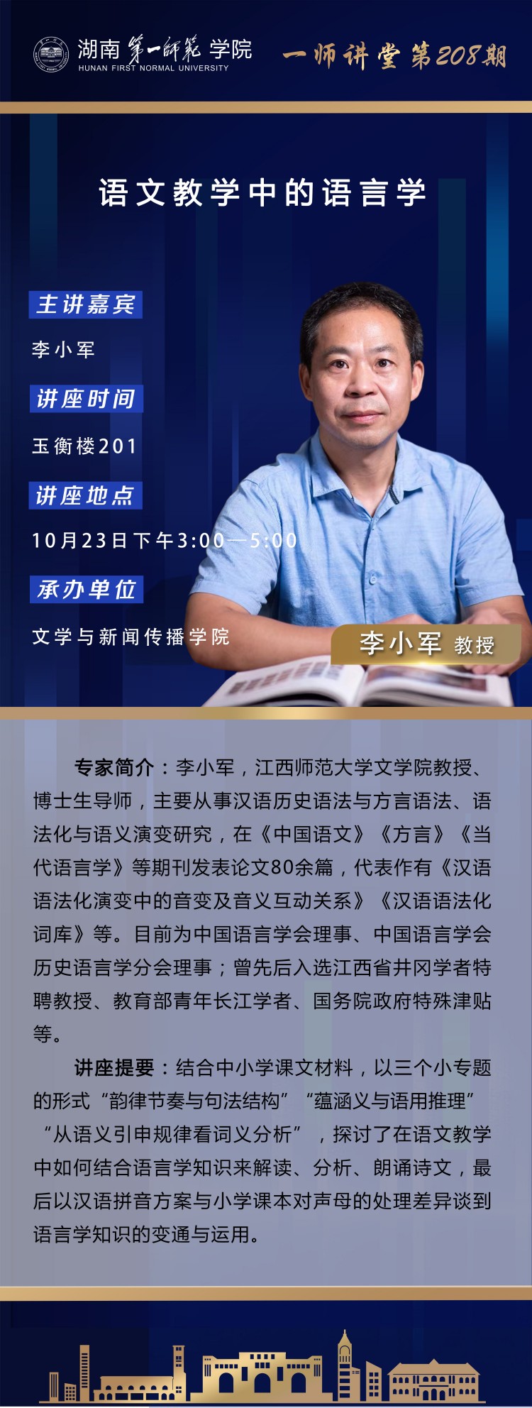 学术预告|一师讲堂第208期:语文教学中的语言学