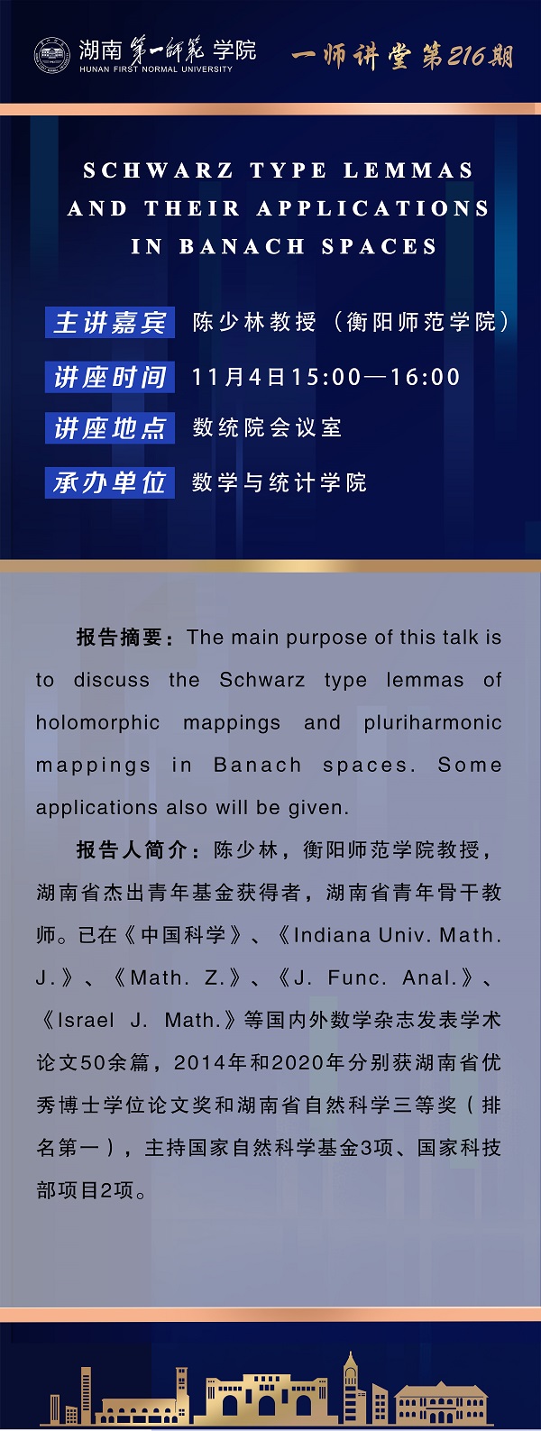 学术预告|一师讲堂第216期:SCHWARZ TYPE LEMMAS AND THEIR APPLICATIONS IN BANACH SPACES