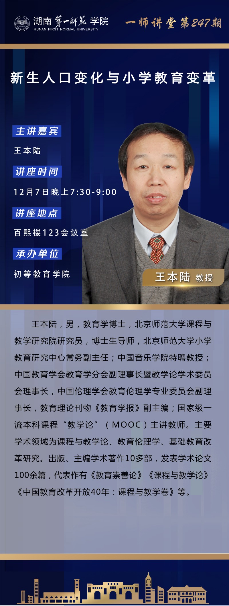 学术预告|一师讲堂第247期:新生人口变化与小学教育变革-87978797威尼斯