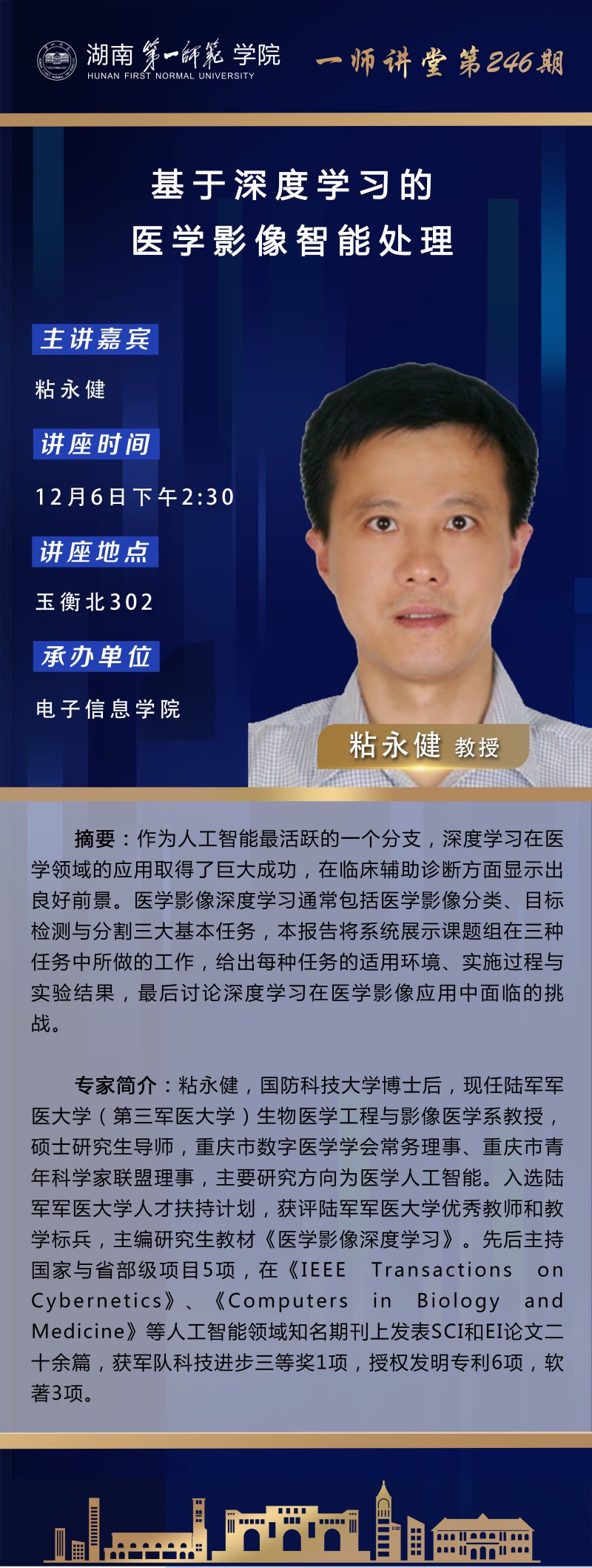 学术预告|一师讲堂第246期:基于深度学习的医学影像智能处理