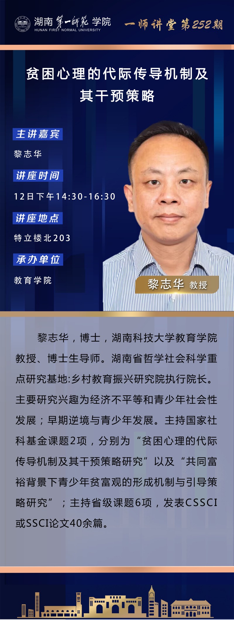 学术预告|一师讲堂第252期:贫困心理的代际传导机制及其干预策略
