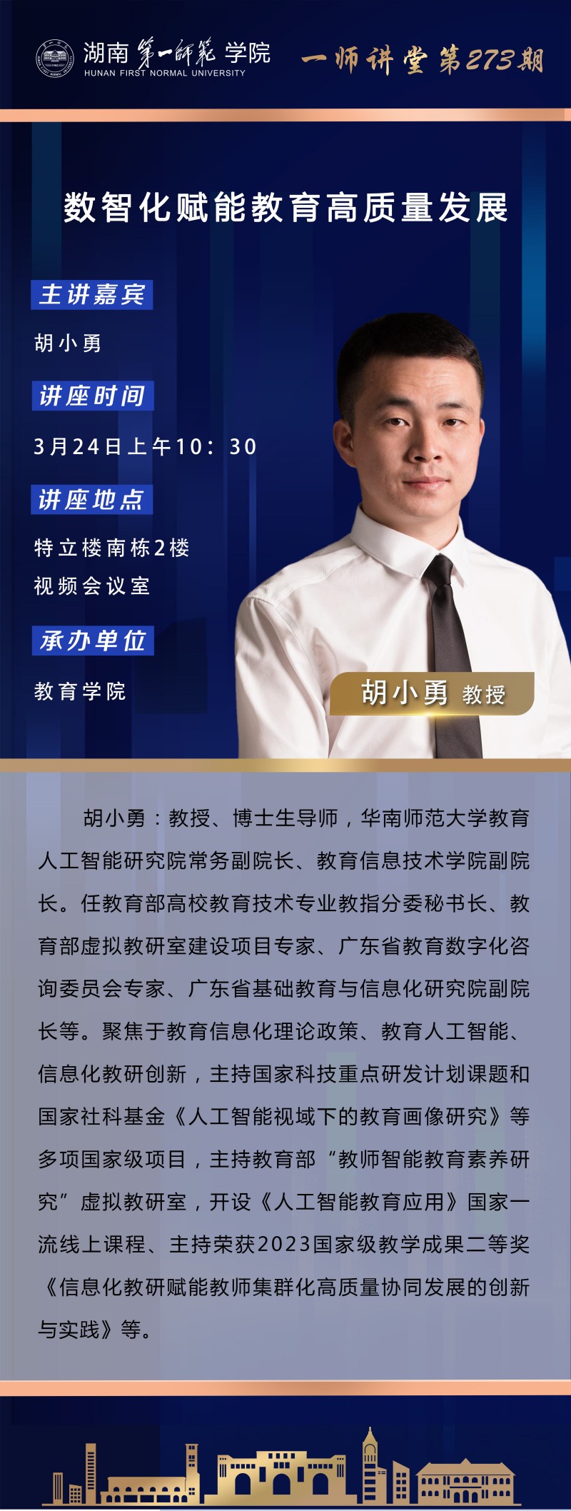 学术预告|一师讲堂第273期:数智化赋能教育高质量发展