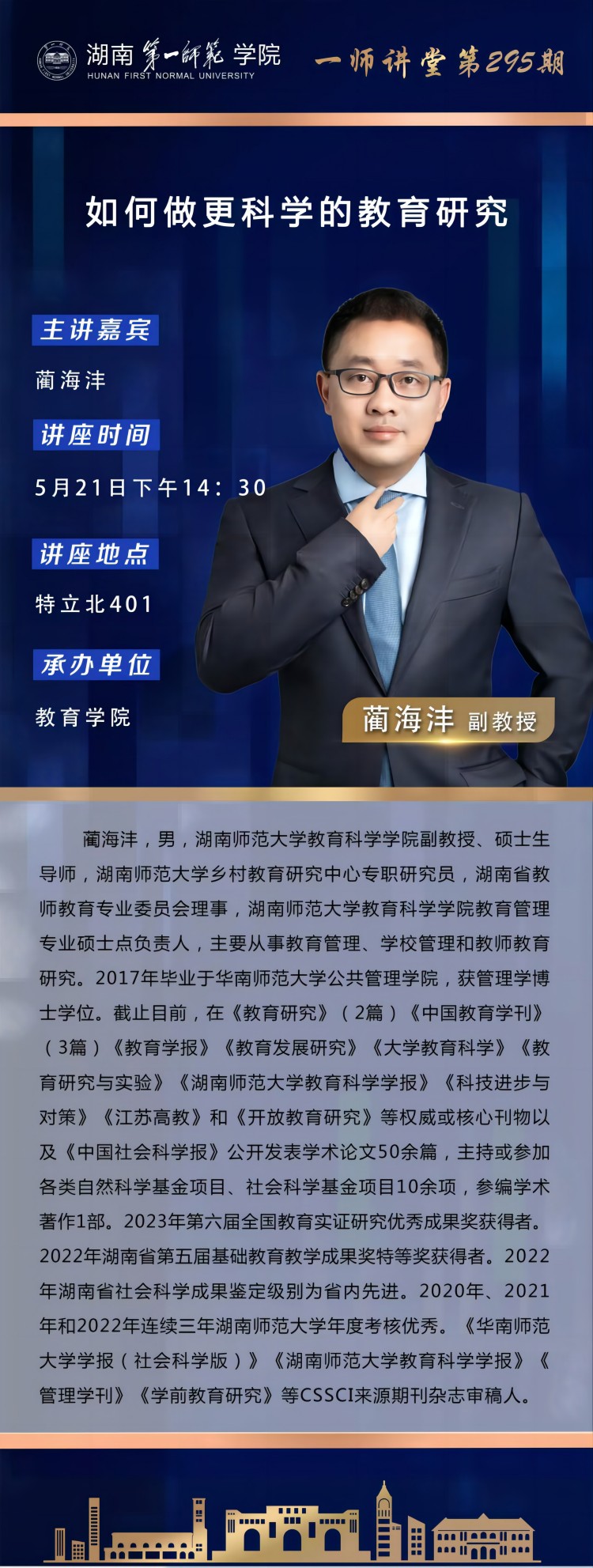 学术预告|一师讲堂第295期:如何做更科学的教育研究